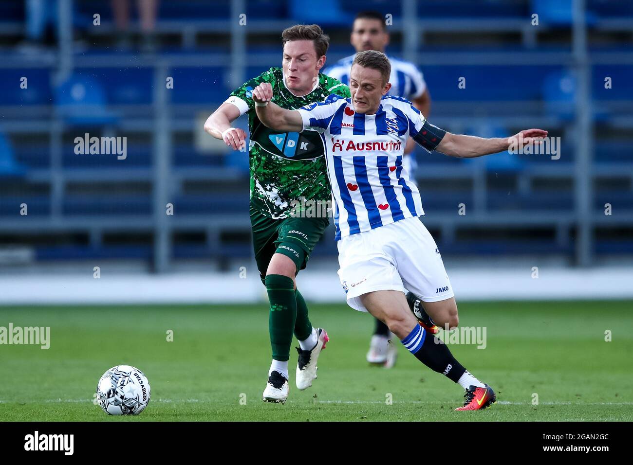 Mees de Wit von PEC Zwolle und Rami Hajal vom SC Heerenveen während des Vorsaison-Freundschaftsspiel zwischen PEC Zwolle und SC Heerenveen am 31. Juli 2021 in Zwolle Niederlande Foto. Zaterdag 31 juli 2021 - 2140. The prediction for home win of PEC Zwolle is 381.